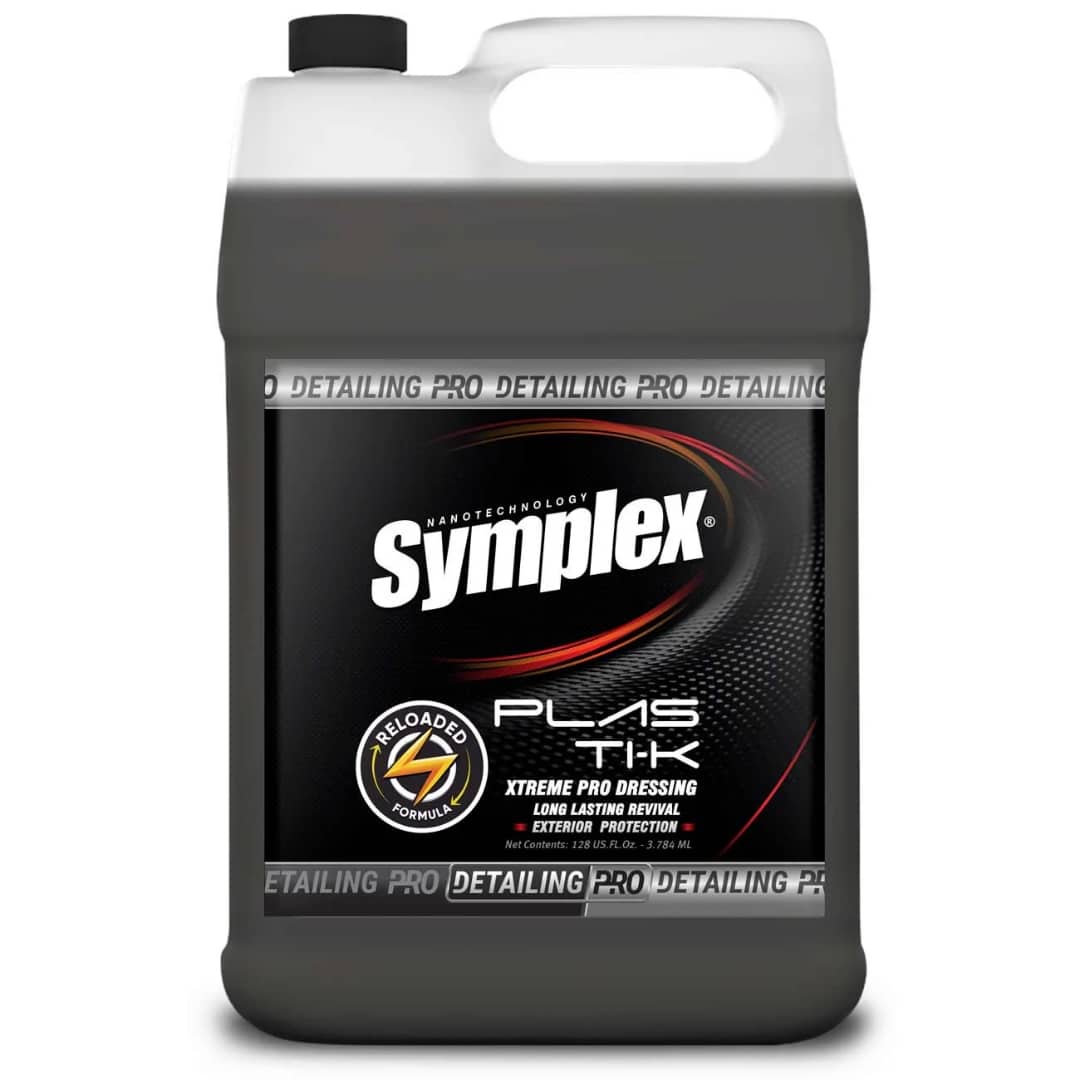 Symplex® Plasti-K Xtreme Exterior Pro DressingPlasti-K Extreme Exterior fue formulado para detailers profesionales que necesitan rapidez, eficiencia y resultados visibles de restauración. Su mezcla de polímeros amino-funcionales reactivos, bloqueadores UV y un inhibidor de óxido no solo protege, sino que también revive plásticos exteriores opacos y desgastados en minutos, devolviéndoles vida. A diferencia de los acondicionadores convencionales que solo enmascaran con brillo, Plasti-K se adhiere a la superficie restaurando la profundidad y claridad, dejando un acabado satinado OEM limpio y seco al tacto.Características y Beneficios